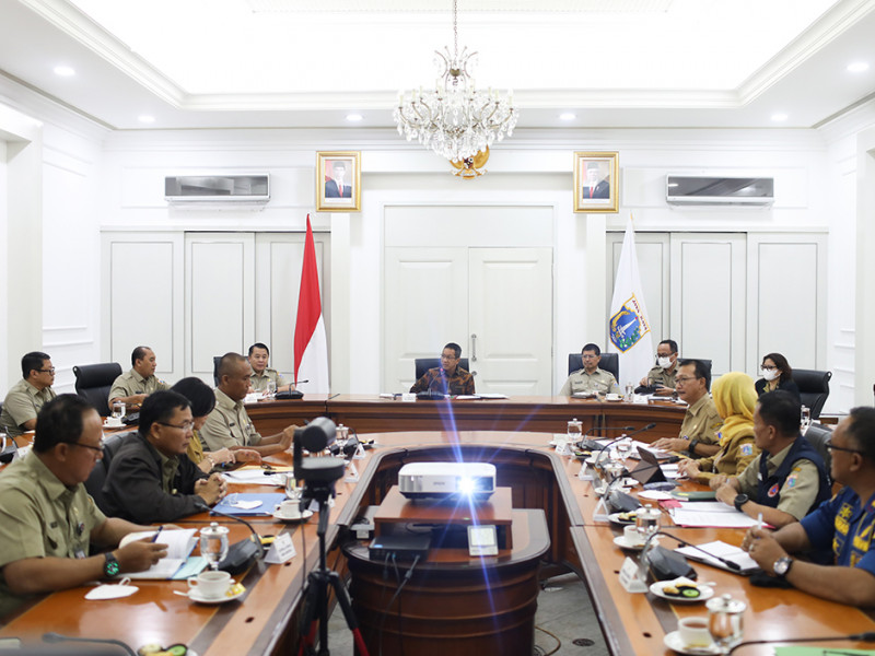 Penjabat (Pj) Gubernur DKI Jakarta, Heru Budi Hartono, mengadakan rapat bersama pimpinan Organisasi Perangkat Daerah (OPD) di lingkungan Pemerintah Provinsi (Pemprov) DKI Jakarta. Rapat tersebut membahas berbagai hal, di antaranya pembenahan data penerima bantuan sosial (Bansos) Kartu Jakarta Pintar (KJP) dan penetapan Upah Minimum Provinsi (UMP) DKI Jakarta. (Foto: Nugroho Sejati/beritajakarta.id)