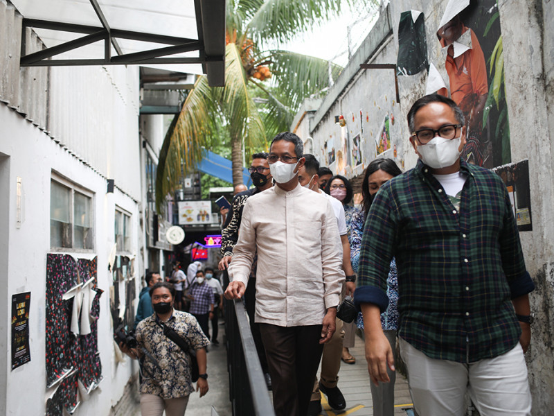 Penjabat (Pj) Gubernur DKI Jakarta, Heru Budi Hartono, menggelar pertemuan bersama Wakil Menteri II Badan Usaha Milik Negara (BUMN), Kartiko Wirjoatmodjo dan Direktur Utama Peruri, Dwina Septiani Wijaya, di M Bloc Space, Kebayoran Baru, Jakarta Selatan, Jumat (25/11). Pertemuan tersebut untuk membahas rencana optimalisasi kawasan M Bloc menjadi pusat aktivitas kreatif Jakarta. (Foto: Nugroho Sejati/beritajakarta.id)