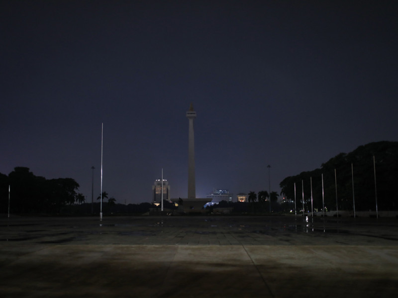 Pemerintah Provinsi (Pemprov) DKI Jakarta melakukan aksi pemadaman lampu selama 60 menit di sejumlah lokasi di Jakarta, Sabtu (26/11) malam. Pemadaman yang dilakukan mulai pukul 20.30-21.30 WIB tersebut sebagai bentuk dukungan terhadap pengendalian perubahan iklim (climate change). (Foto: Nugroho Sejati/beritajakarta.id)