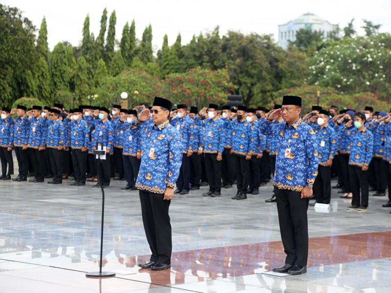 Sekretaris Daerah (Sekda) DKI Jakarta, Marullah Matali memimpin upacara di Taman Makam Pahlawan (TMP) Kalibata, Jakarta Selatan, Kamis (24/11). Upacara digelar dalam rangka memperingati HUT ke-51 Korps Pegawai Republik Indonesia (KORPRI). (Foto: Reza Hapiz/beritajakarta.id)