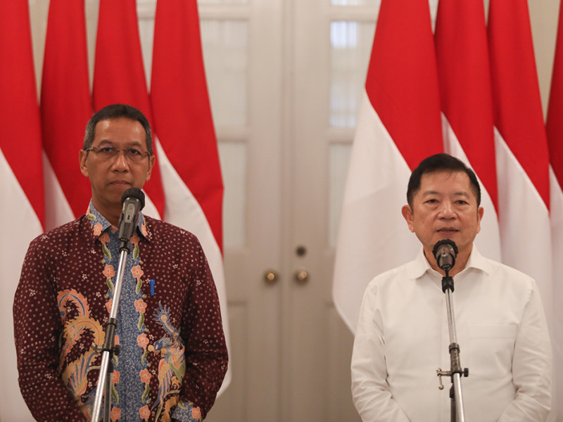Penjabat (Pj) Gubernur DKI Jakarta, Heru Budi Hartono menggelar pertemuan dengan Menteri Perencanaan Pembangungan Nasional/Kepala Badan Perencanaan Pembangunan Nasional (PPN/Bappenas) RI, Suharso Monoarfa di Ruang Rapat Balai Kota DKI Jakarta, Gambir, Jakarta Pusat, Kamis (24/11). Pertemuan tersebut membahas Jakarta pasca pemindahan Ibu Kota Negara (IKN) ke Kalimantan Timur. (Foto: Nugroho Sejati/beritajakarta.id)