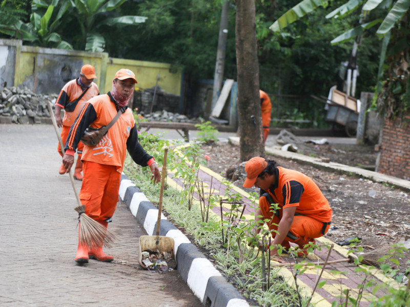Petugas Penanganan Prasarana dan Sarana Umum (PPSU) Kelurahan Ragunan, Pasar Minggu, Jakarta Selatan melakukan penataan kawasan Jalan Poncol, Senin (14/11). Penataan ini dilakukan untuk semakin memberikan kenyamanan dan meningkatkan estetika. Penataan sepanjang 200 meter ini dipercantik dengan paving block untuk troto ar dan ditanami aneka tanaman hias ataupun produktif, pengerjaan ini ditargetkan rampung pertengahan Desember mendatang (Foto: Reza Hapiz/beritajakarta.id)