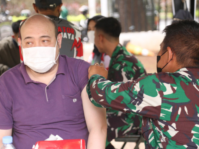 Pemerintah Provinsi (Pemprov) DKI Jakarta bersama Kesehatan Angkatan Darat Kodam Jaya (Kesdam Jayakarta) menggelar Sentra Vaksinasi Booster di Lapangan Banteng, Jakarta Pusat. Sebanyak 68 orang mengikuti vaksinasi COVID -19, Senin (14/11). (Foto: Mochamad Tresna Suheryanto/beritajakarta.id)