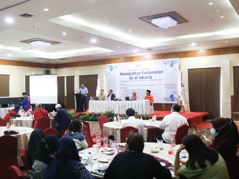 Wartawan Koordinatoriat Balai Kota-DPRD DKI Jakarta menggelar diskusi bertajuk "Mewujudkan Kedaulatan Air di Jakarta" di Grand Cempaka Business Hotel, Jakarta Pusat, Senin (14/11). (Foto: Nugroho Sejati/beritajakarta.id)
