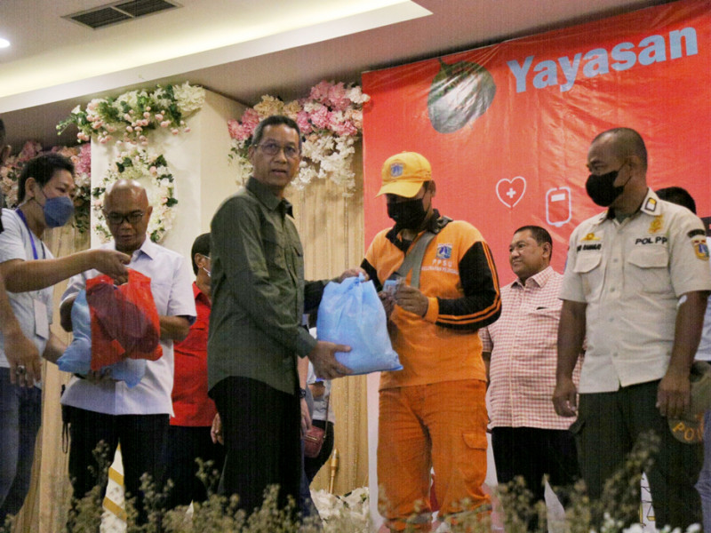 Penjabat (Pj) Gubernur DKI Jakarta, Heru Budi Hartono menghadiri kegiatan bakti sosial (baksos) Kejaksaan Tinggi (Kejati) Provinsi DKI Jakarta di Pluit Village Mall, Jakarta Utara, Sabtu (12/11). Baksos dalam rangka memperingati Hari Pahlawan ini menyediakan 1.300 paket sembako dan menargetkan sebanyak 1.200 kantong darah. (Foto: Mochamad Tresna Suheryanto/beritajakarta.id)