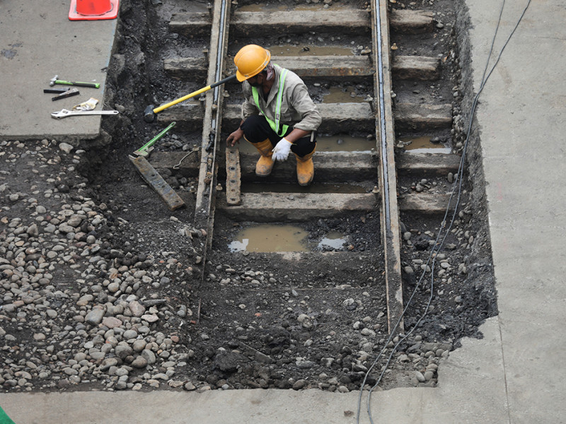 Pekerja melakukan proses relokasi temuan rel trem di proyek MRT Jakarta fase 2A CP 202 di Jalan Gajah Mada, Gambir, Jakarta Pusat, Jumat (11/11). Rel trem berusia lebih dari 100 tahun tersebut akan direlokasi sementara ke storage pool PPD Jelambar. (Foto: Nugroho Sejati/beritajakarta.id)