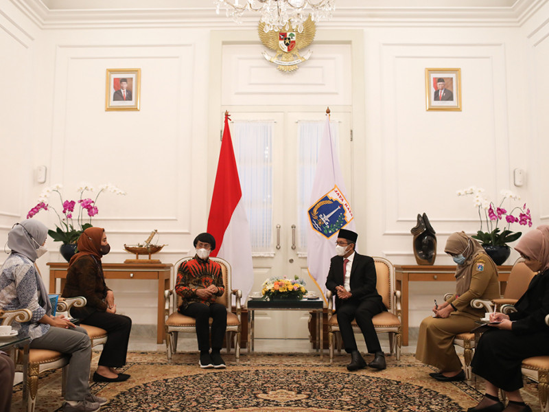Kepala Dinas Kesehatan DKI Jakarta, Widyastuti menyerahkan tiga penghargaan dari Menteri Kesehatan (Menkes) RI kepada Penjabat (Pj) Gubernur DKI Jakarta, Heru Budi Hartono. Penyerahan penghargaan dilakukan di Balai Kota DKI Jakarta, Kamis (10/11). Pemprov DKI Jakarta menerima penghargaan Pastika Citta Abhinawa karena telah melakukan inovasi dalam penerapan Kawasan Tanpa Rokok (KTR). (Foto: Nugroho Sejati/beritajakarta.id)