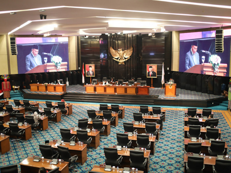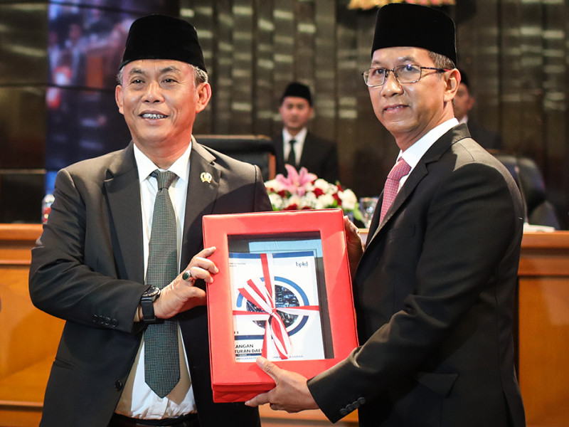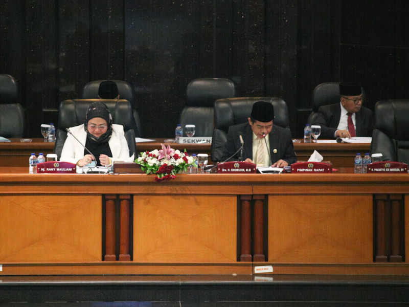Penjabat (Pj) Gubernur DKI Jakarta, Heru Budi Hartono, menyampaikan jawaban terhadap pemandangan umum fraksi terkait Rancangan Peraturan Daerah (Raperda) APBD TA 2023 di Ruang Rapat Paripurna, Gedung DPRD DKI Jakarta, Gambir, Jakarta Pusat, Rabu (9/11). Melalui jawaban yang disampaikan, Heru berharap DPRD dapat membahas, menyetujui, dan menetapkan Raperda tersebut menjadi Perda sesuai dengan jadwal yang telah ditetapkan melalui Badan Musyawarah. (Foto: Nugroho Sejati/beritajakarta.id)