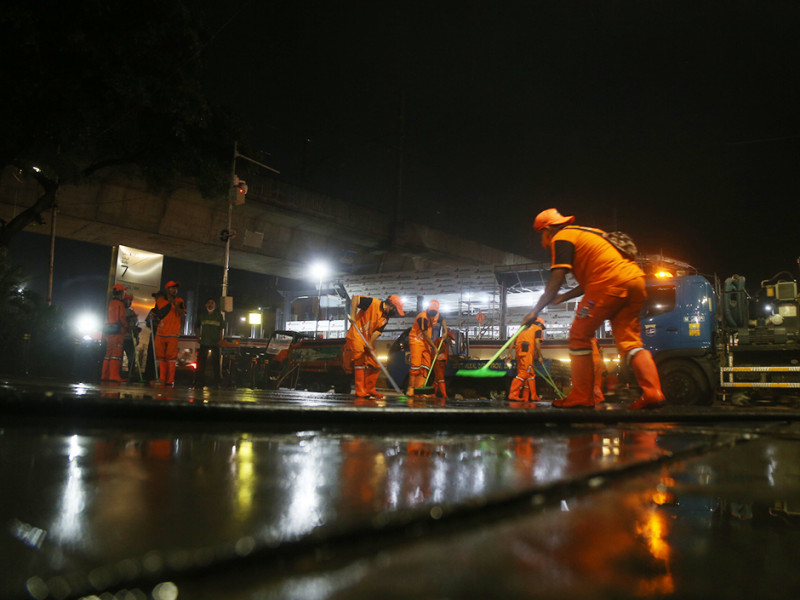 Ratusan personel lintas Organisasi Perangkat Daerah (OPD) melakukan pembersihan trotoar di sepanjang Jalan Medan Merdeka, Masjid Istiqlal hingga ke Gereja Katedral, Jakarta Pusat, Jumat (4/11) malam. Aksi bersih tersebut dihadiri Wali Kota Jakarta Pusat, Dhany Sukma; Kepala Dinas Penanggulangan Kebakaran dan Penyelamatan (Gulkarmat), Satriadi Gunawan; dan Kepala Biro Pemerintahan Setda DKI Jakarta, Andriansyah. (Foto: Mochamad Tresna Suheryanto/beritajakarta.id)