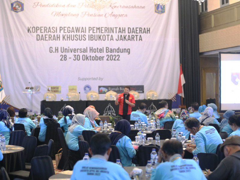 Anggota Koperasi Pegawai Pemerintah Daerah (KPPD) Provinsi DKI Jakarta yang mengikuti Pendidikan dan Pelatihan (Diklat) Kewirausahaan, Sabtu (29/10) diberikan materi Success Story. Diklat berlangsung di Bandung, Jawa Barat, mulai 28-30 Oktober 2022. (Foto: Reza Hapiz/beritajakarta.id)