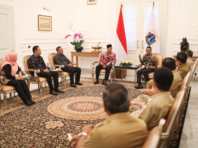 Penjabat (Pj) Gubernur DKI Jakarta, Heru Budi Hartono, menerima kunjungan Badan Pengawas Pemilihan Umum (Bawaslu) Provinsi DKI Jakarta di Balai Kota, Gambir, Jakarta Pusat, Senin (31/10). Pemprov DKI Jakarta siap membantu dan bersinergi dengan Bawaslu untuk menyukseskan pelaksanaan Pemilihan Umum (Pemilu) serentak pada 2024. (Foto: Nugroho Sejati/beritajakarta.id)