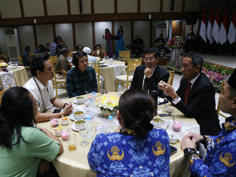 Penjabat (Pj) Gubernur Provinsi DKI Jakarta, Heru Budi Hartono mengundang para wartawan Balai Kota dan DPRD DKI Jakarta (Balkoters) makan bersama di Balai Agung, Jumat (28/10). Acara ini diadakan untuk mempererat tali silaturahmi serta memperkuat sinergisitas antara Pemprov DKI Jakarta dengan wartawan. (Foto: Mochamad Tresna Suheryanto/beritajakarta.id)