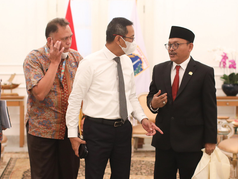 Sekretaris Komisi D DPRD DKI Jakarta, Syarif, mengunjungi Penjabat (Pj) Gubernur, Heru Budi Hartono di Ruang Rapat TPUT Balai Kota, Gambir, Jakarta Pusat, Kamis (27/10). Kunjungan Syarif tersebut dalam rangka silaturahmi sekaligus meningkatkan sinergisitas antara eksekutif dengan legislatif, guna membenahi Jakarta yang lebih baik dan maju. (Foto: Nugroho Sejati/beritajakarta.id)
