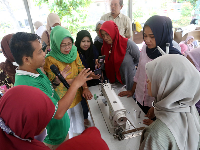 Suku Dinas Tenaga Kerja Transmigrasi dan Energi (Sudin Nakertransgi) Jakarta Selatan menggelar pelatihan menjahit di Ruang Publik Terpadu Ramah Anak (RPTRA) Taman Gajah, Kelurahan Cipete Selatan, Kecamatan Cilandak. Pelatihan diikuti oleh 50 peserta yang berasal dari 10 kecamatan di Jakarta Selatan. (Foto: Reza Hapiz/beritajakarta.id)