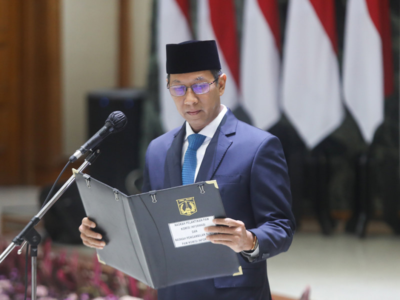 Dua anggota Komisi Informasi Pergantian Antar Waktu (PAW) periode 2020-2024 dan anggota Dewan Pengupahan Provinsi DKI Jakarta periode 2022-2025 resmi dilantik. Pelantikan dipimpin Penjabat (Pj) Gubernur DKI Jakarta, Heru Budi Hartono di Balai Agung, Rabu (26/10). (Foto: Nugroho Sejati/beritajakarta.id)