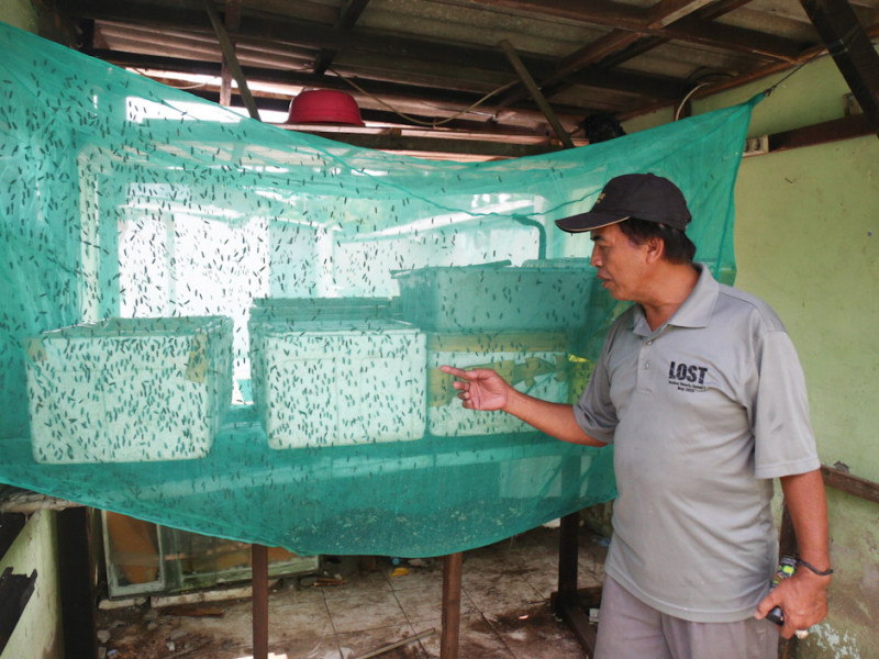 Warga di Kompleks Yonhub, RT 03/04, Kelurahan Kelapa Dua, Kecamatan Kebon Jeruk, Jakarta Barat, membudidayakan Maggot. Larva dari lalat Black Soldier Fly (BSF) atau Hermetia Illucens ini memiliki nilai ekonomis dan dapat membantu mengatasi persoalan sampah. (Foto: Mochamad Tresna Suheryanto/beritajakarta.id)