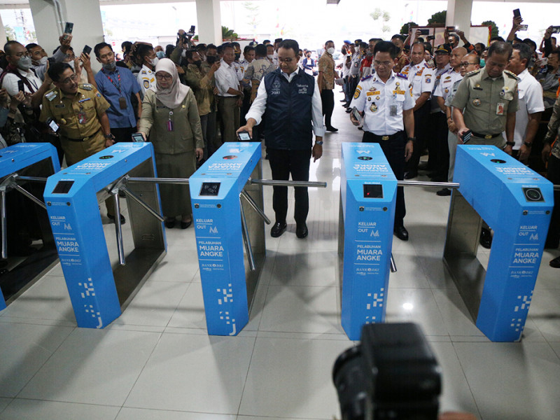 Gubernur DKI Jakarta, Anies Baswedan meresmikan revitalisasi Pelabuhan Muara Angke, Pluit, Penjaringan, Jakarta Utara, Senin (3/10). Kehadiran pelabuhan ini diharapkan dapat memfasilitasi kebutuhan mobilitas warga kepulauan ke daratan dan begitu pula sebaliknya. Pelabuhan seluas 6.700 m² tersebut juga dilengkapi sejumlah fasilitas seperti ramp, lift, eskalator, dan toilet yang ramah bagi penyandang disabilitas. (Foto: Mochamad Tresna Suheryanto/beritajakarta.id)