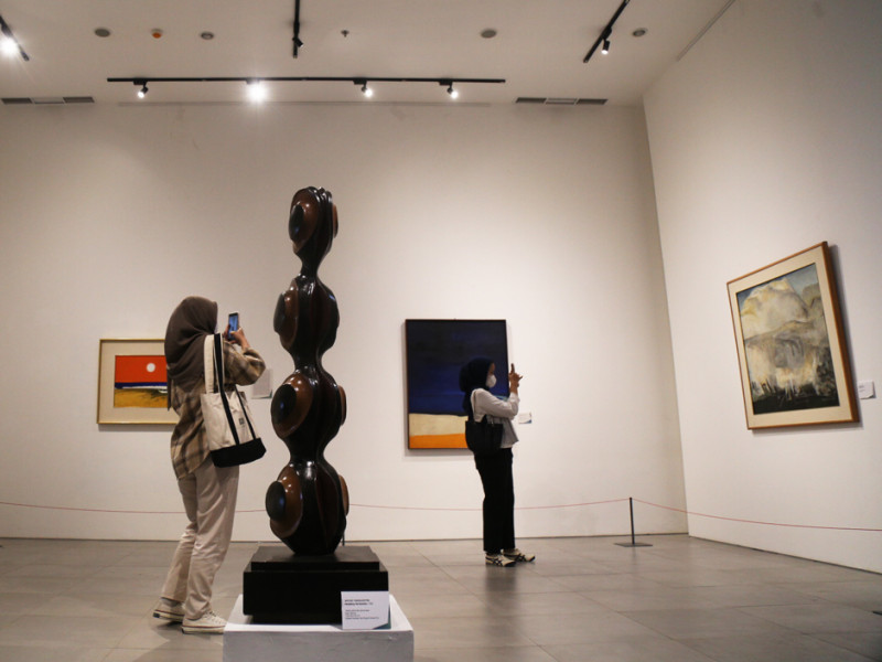 Pusat Kesenian Jakarta Taman Ismail Marzuki (PKJ TIM) menggelar pameran besar seni rupa bertajuk Memoar di Galeri Emeria Soenassa Taman Ismail Marzuki, Jakarta Pusat, Selasa (20/9). Pameran ini menampilkan karya seni rupa dari 33 seniman anggota Dewan Kesenian Jakarta dan juga yang pernah menjadi pengajar di Institut Kesenian Jakarta (IKJ). (Foto: Mochamad Tresna Suheryanto/beritajakarta.id)
