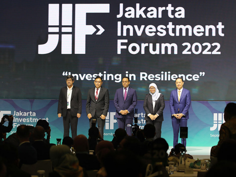 Gubernur DKI Jakarta, Anies Baswedan membuka Jakarta Investment Forum (JIF) 2022 di Hotel Fairmont, Jakarta Pusat, Kamis (1/9). JIF diinisiasi Dinas Penanaman Modal dan Pelayanan Terpadu Satu Pintu (PM-PTSP) DKI Jakarta melalui Unit Pengelola Jakarta Investment Centre (JIC) berkolaborasi dengan U20 Mayors Summit dan Bank Indonesia. (Foto: Mochamad Tresna Suheryanto/beritajakarta.id)