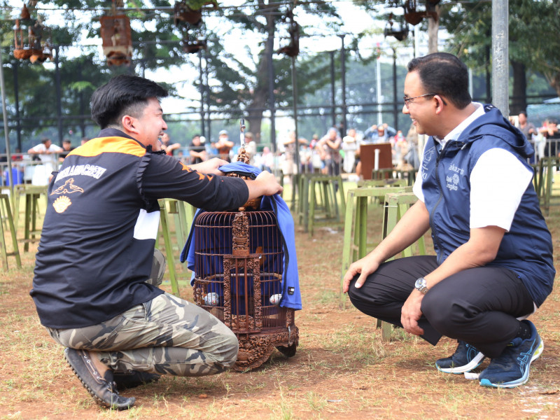 Sebanyak 800 peserta dengan 3.850 ekor burung mengikuti lomba Kicau Burung Jakarta di Taman Lapangan Banteng, Sawah Besar, Jakarta Pusat, Minggu (7/8). Gubernur DKI Jakarta, Anies Baswedan menyerahkan langsung piala kepada pemenang.(Foto: Mochamad Tresna Suheryanto/beritajakarta.id)