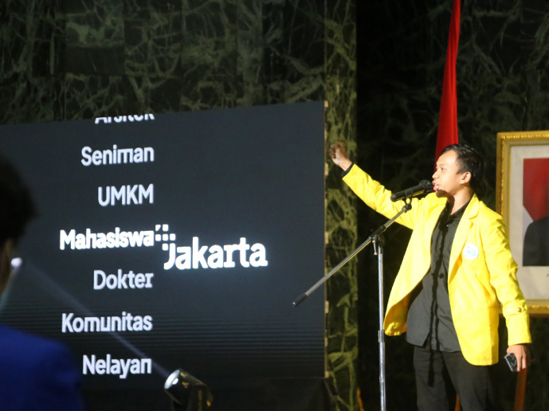 Pemerintah Provinsi (Pemprov) DKI Jakarta mengadakan forum diskusi bertema \"Tuang Asa Untuk Masa Depan Kota\" di Balai Agung, Balai Kota DKI Jakarta, Senin (8/8). Diskusi ini melibatkan sejumlah mahasiswa yang tergabung dalam Badan Eksekutif Mahasiswa (BEM) se-Jabodetabek. (Foto: Mochamad Tresna Suheryanto/beritajakarta.id)