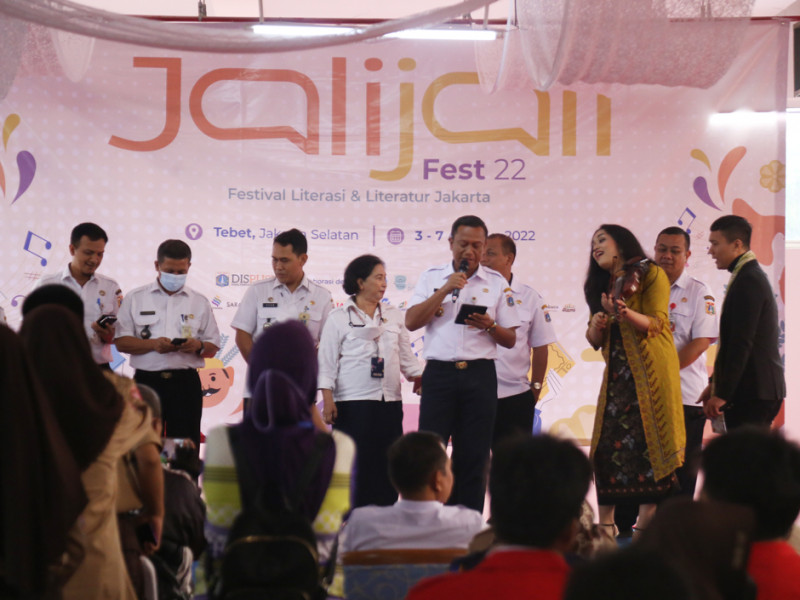 Dinas Perpustakaan dan Kearsipan (Dispusip) berkolaborasi dengan Dinas Pendidikan DKI Jakarta, Komunitas Baca di Tebet, dan Ikatan Penerbit Indonesia (IKAPI) menggelar acara Jalijali Fest 2022 di Gedung Sarana Square, Jalan Tebet Barat IV, Kelurahan Tebet Barat, Jakarta Selatan, Rabu (3/8). Festival ini menghadirkan berbagai rangkaian aktivitas literasi yang dibagi dalam lima tema. (Foto: Mochamad Tresna Suheryanto/beritajakarta.id)
