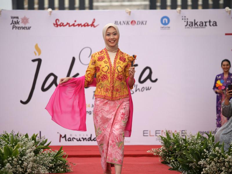 Pemerintah Provinsi (Pemprov) DKI Jakarta melalui Dinas Perindustrian, Perdagangan, Koperasi, Usaha Kecil dan Menengah (PPKUKM) memfasilitasi fashion show busana etnik Jakarta. Pelaksanaan fashion show di Gedung Sarinah, Jalan MH Thamrin, Jakarta Pusat, Jumat (24/6), ini diikuti lima brand batik. (Foto: Mochamad Tresna Suheryanto/beritajakarta.id)