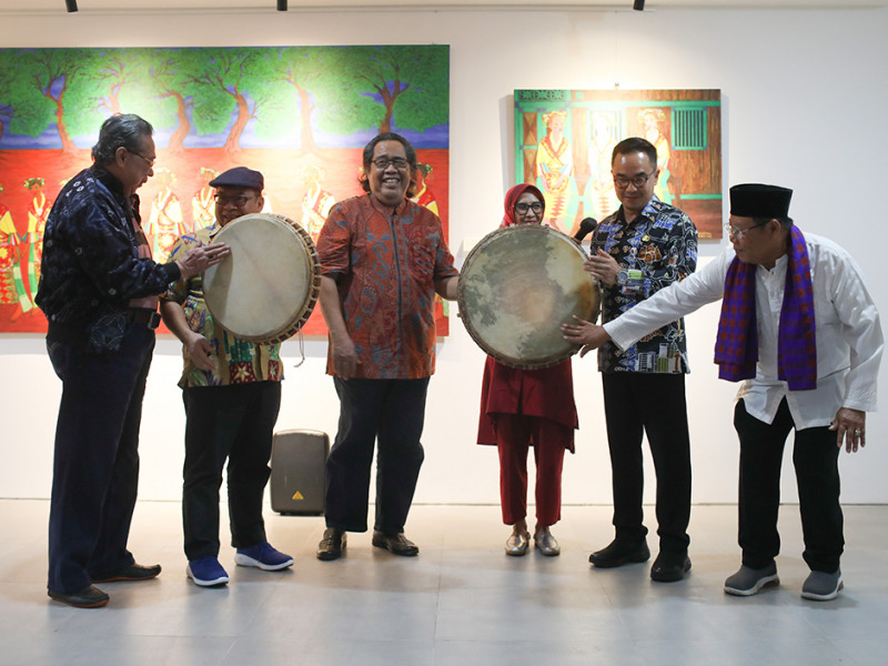 Kepala Dinas Kebudayaan (Disbud) DKI Jakarta, Iwan Henry Wardhana membuka pameran seni rupa bertema Betawi karya pelukis Sarnadi Adam di Gedung Panjang Taman Ismali Marzuki (TIM), Menteng, Jakarta Pusat, Kamis (16/6). Pameran bertajuk \"Betawi dalam Lukisan\" ini dalam rangka menyambut Hari Ulang Tahun (HUT) ke-495 Jakarta. (Foto: Nugroho Sejati/beritajakarta.id)