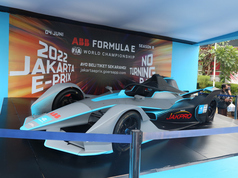 Ada yang menarik pada pelaksanaan Hari Bebas Kendaraan Bermotor (HBKB) di kawasan Bundaran HI hari ini, Minggu (29/5). Kegiatan turut diramaikan dengan pameran replika mobil Formula E. Pameran tersebut untuk mengenalkan kepada masyarakat jet darat bertenaga listrik yang akan beradu kecepatan di Jakarta International E-Prix Circuit (JIEC) pada 4 Juni 2022 mendatang. (Foto: Reza Hapiz/beritajakarta.id)
