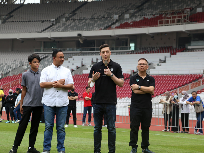 Gubernur DKI Jakarta, Anies Baswedan menghadiri Coaching Clinic Atlet Sepak Bola Provinsi DKI Jakarta di Stadion Utama Gelora Bung Karno (SUGBK), Jakarta Pusat, Kamis (26/5). Dalam coaching clinic kali ini, sejumlah peserta yang didominasi anak-anak muda berkesempatan bertemu langsung dan berbagi pengalaman dengan bintang sepak bola asal Jerman, Mesut Ozil. (Foto: Reza Hapiz/beritajakarta.id)