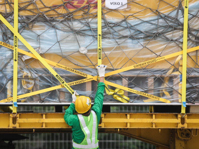 Mobil balap yang akan berkompetisi di ajang Formula E (E-Prix) dari masing-masing tim telah tiba di Jakarta. Para pekerja menurunkan paket bagian-bagian mobil balap Formula E di Jakarta International Stadium (JIS), Tanjung Priok, Jakarta Utara, Minggu (22/5). (Foto: Nugroho Sejati/beritajakarta.id)
