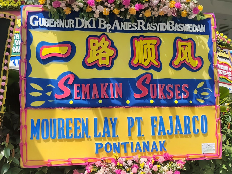 Puluhan karangan bunga yang ditujukan kepada Gubernur DKI Jakarta, Anies Baswedan tersusun rapi di halaman Balai Kota DKI Jakarta, Jakarta Pusat, Minggu (8/5). Karangan bunga tersebut berisi ucapan selamat dan doa bagi Anies yang berulang tahun ke-53 pada Sabtu (7/5) kemarin. Karangan bunga ini berasal dari berbagai kalangan, mulai dari warga biasa, tokoh masyarakat, agama, politik, sosial, hingga pengusaha. Tidak hanya dari Jakarta dan luar Jakarta, ada juga pengirim yang berasal dari luar negeri. (Foto: Mochamad Tresna Suheryanto/beritajakarta.id)