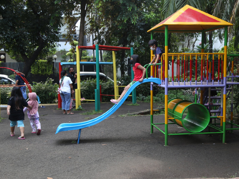 Jelang waktu berbuka puasa, RPTRA Amir Hamzah, Jalan Taman Matraman Timur, Kelurahan Pegangsaan, Kecamatan Menteng, Jakarta Pusat, Minggu (10/4) ramai dikunjungi warga. Berbagai aktivitas dilakukan seperti berolahraga, berkeliling, hingga bermain bersama keluarga tercinta dengan tetap menerapkan protokol kesehatan. (Foto: Reza Hapiz/beritajakarta.id)