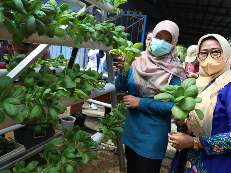 Suku Dinas Ketahanan Pangan, Kelautan, dan Pertanian (Sudin KPKP) Jakarta Selatan melakukan panen perdana sayuran hidroponik di Panti Sosial Bina Remaja (PSBR) Taruna Jaya 1, Jalan Tebet Barat Raya No 100, Tebet, Jakarta Selatan, Jumat (8/4). Sebanyak tujuh kilogram sayuran pakcoy berhasil dipanen dalam kegiatan kali ini. Hasil panen akan dipasarkan ke swalayan dengan brand New Garden Hydro. (Foto: Reza Hapiz/beritajakarta.id)