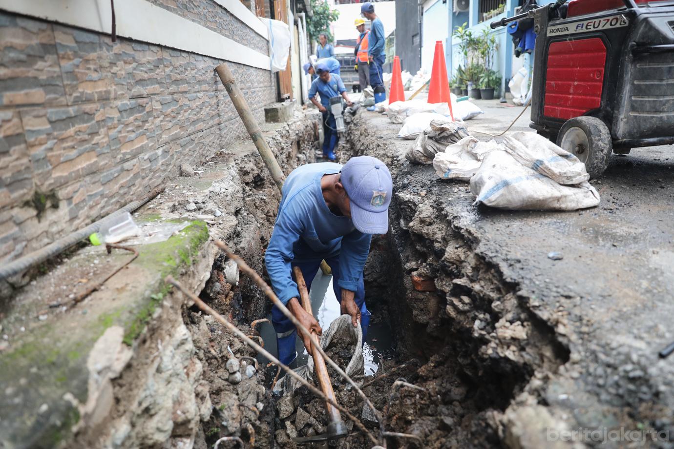 Petugas Suku Dinas Sumber Daya Air (Sudin SDA) Jakarta Pusat melakukan normalisasi saluran air di Jalan Bendungan Hilir VII, Tanah Abang, Jakarta Pusat, Senin (2/3). Normalisasi saluran sepanjang 170 meter ini merupakan tindak lanjut hasil Musrenbang Kelurahan Bendungan Hilir Tahun 2026 dan ditargetkan selesai pada awal Mei mendatang.