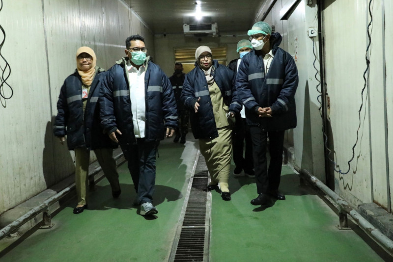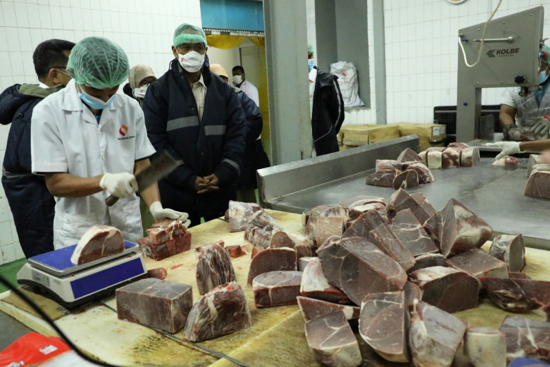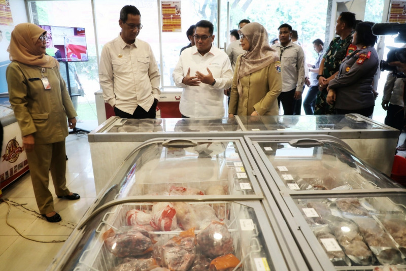 Penjabat (Pj) Gubernur DKI Jakarta, Heru Budi Hartono meninjau stok daging sapi, daging ayam dan ikan di Rumah Pemotongan Hewan (RPH) Cakung Perumda Dharma Jaya, Jalan Penggilingan Raya, Kecamatan Cakung, Jakarta Timur, Selasa (18/4). Dalam kunjungannya Pj Gubernur memastikan stok daging sapi, daging ayam, dan ikan aman menjelang Lebaran hingga Hari Raya #Idulfitri 1444 Hijriah.