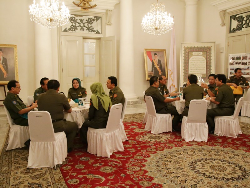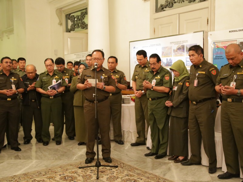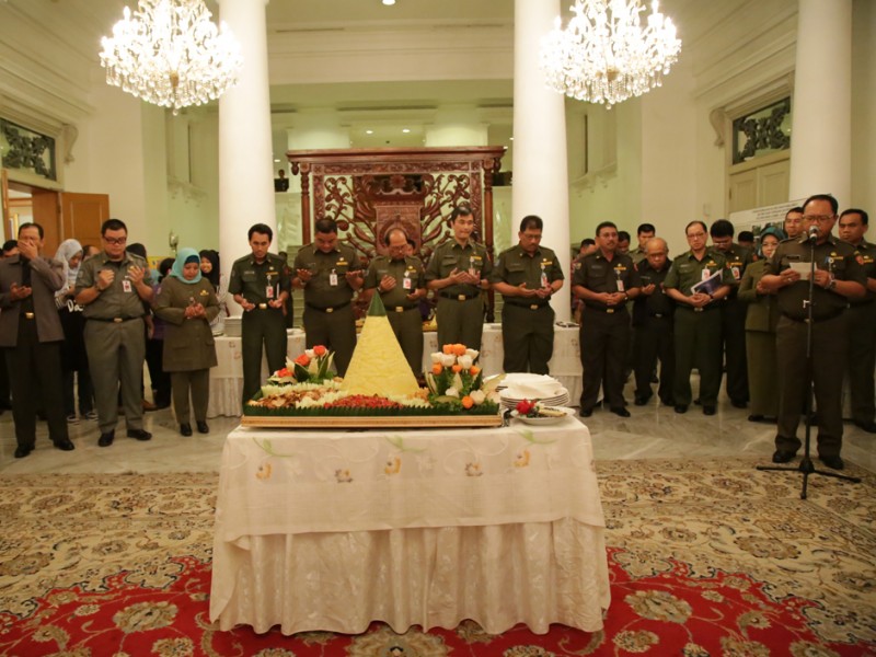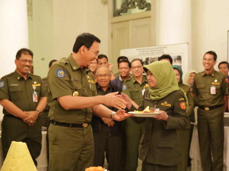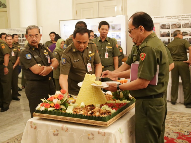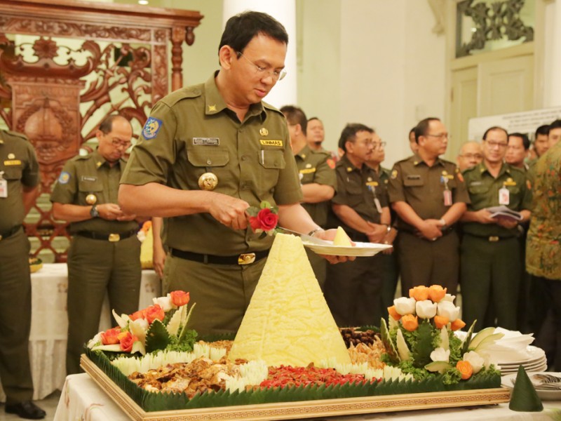 Gubernur DKI Jakarta, Basuki Tjahaja Purnama berserta segenap jajaran Kepala Satuan Kerja Perangkat Daerah (SKPD) menggelar acara Potong Tumpeng di Balai Kota DKI Jakarta, Senin (28/12/2015). Potong Tumpeng ini sebagai wujud rasa syukur atas karunia Sang Pencipta di tahun 2015 dan harapan agar tahun 2016 mendatang warga Jakarta semakin sejahtera. (Foto: Yopie/beritajakarta.com)