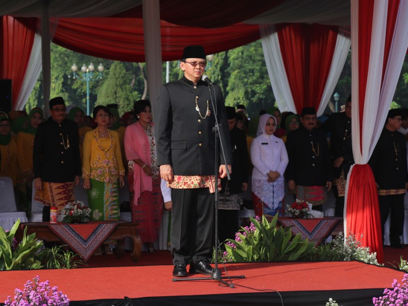 Gubernur DKI Jakarta, Basuki Tjahaja Purnama bertindak sebagai Inspektur Upacara (Irup) memperingati Hari Ulang Tahun ke-489 DKI Jakarta, di Silang Monas, Gambir, Jakarta Pusat, Rabu (22/6). (Foto: Reza/Beritajakarta.com)
