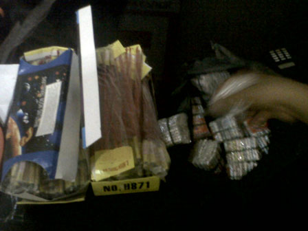 Kanit Reskrim Polsek Metro Cempaka Putih, Iptu Bambang menjelaskan, 40 bungkus petasan yang siap dipasarkan antara lain, 23 bungkus petasan jenis jangwe merek R Moon Travel dan 17 bungkus petasan korek merek lumba- lumba alias CR.