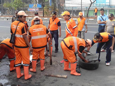 Petugas Gabungan Bersihkan Kali Ciliwung"Kegiatan kerja bakti ini membersihkan saluran air di sepanjang jalan Matraman agar musim hujan tidak ada banjir di lokasi Jakarta Timur, dan seimbang seperti di daerah-daerah Jakarta Pusat," ungkap Bambang di lokasi kerja bakti, Sabtu (31/10).