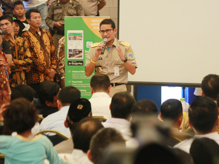 Wakil Gubernur DKI Jakarta, Sandiaga Uno, Selasa (17/4), menghadiri sosialisasi sekaligus meluncurkan aplikasi Oyes di Pasar Koja Baru, Koja, Jakarta Utara. Aplikasi tersebut memberikan akses bagi pedagang di lingkungan pasar PD Pasar Jaya untuk mengakses layanan pembelian dan antaran produk Jakgrosir.