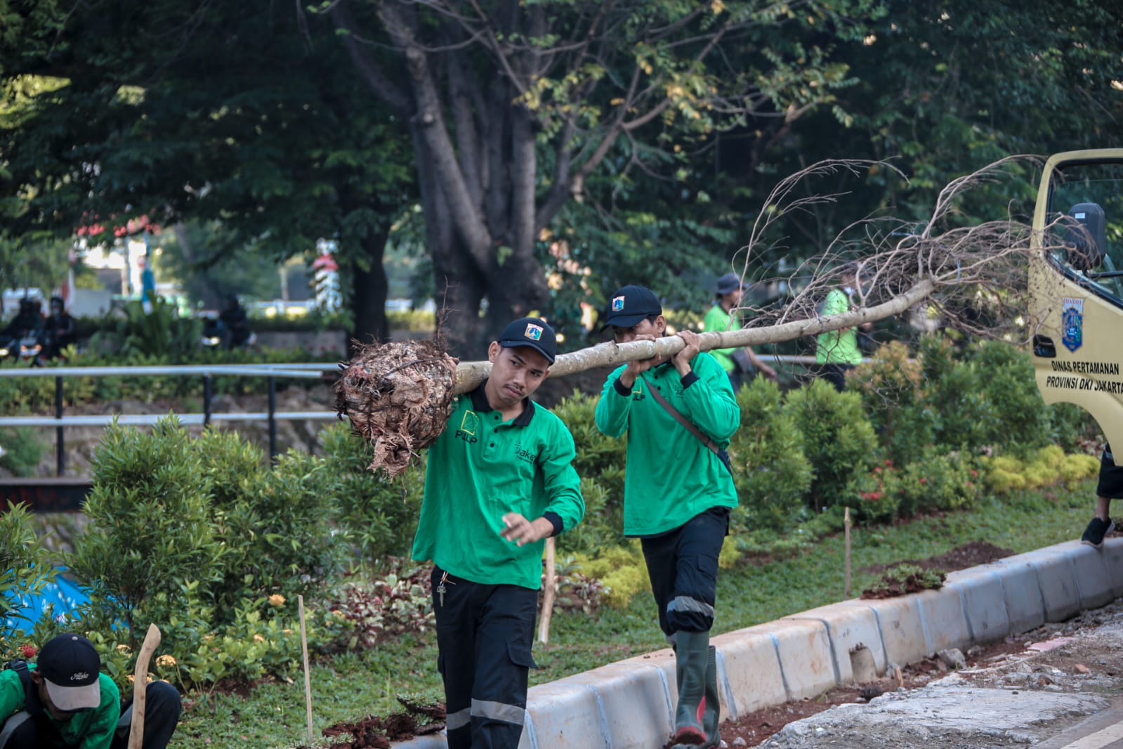 "Saya bersama Wali Kota Jakarta Timur, beberapa tokoh masyarakat dan Kepala Dinas Pertamanan, camat dan lurah, kembali menanam pohon dengan panjang area 296 meter. Nanti penanaman pohon di sini akan dilanjutkan oleh Wali Kota dan warga," kata Pj. Gubernur Heru.