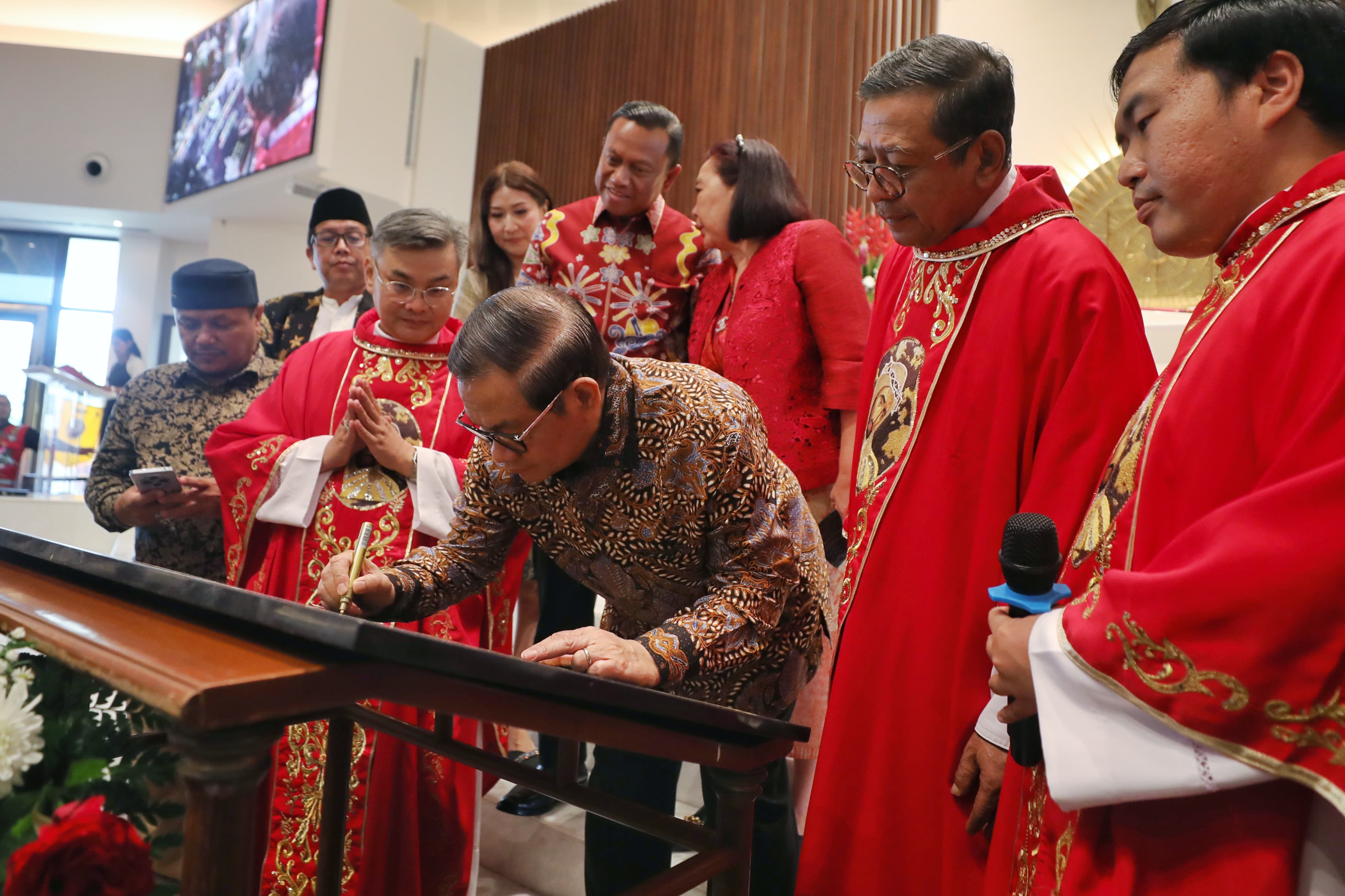 Gubernur DKI Jakarta, Pramono Anung, didampingi Wali Kota Jakarta Timur, Munjirin, serta Kepala Biro Pendidikan Mental dan Spiritual (Dikmental) Setda Provinsi DKI Jakarta, Fajar Eko Satriyo, meresmikan gedung baru Gereja Katolik Kalvari Paroki di Lubang Buaya, Cipayung, Jakarta Timur, pada Minggu (14/9).