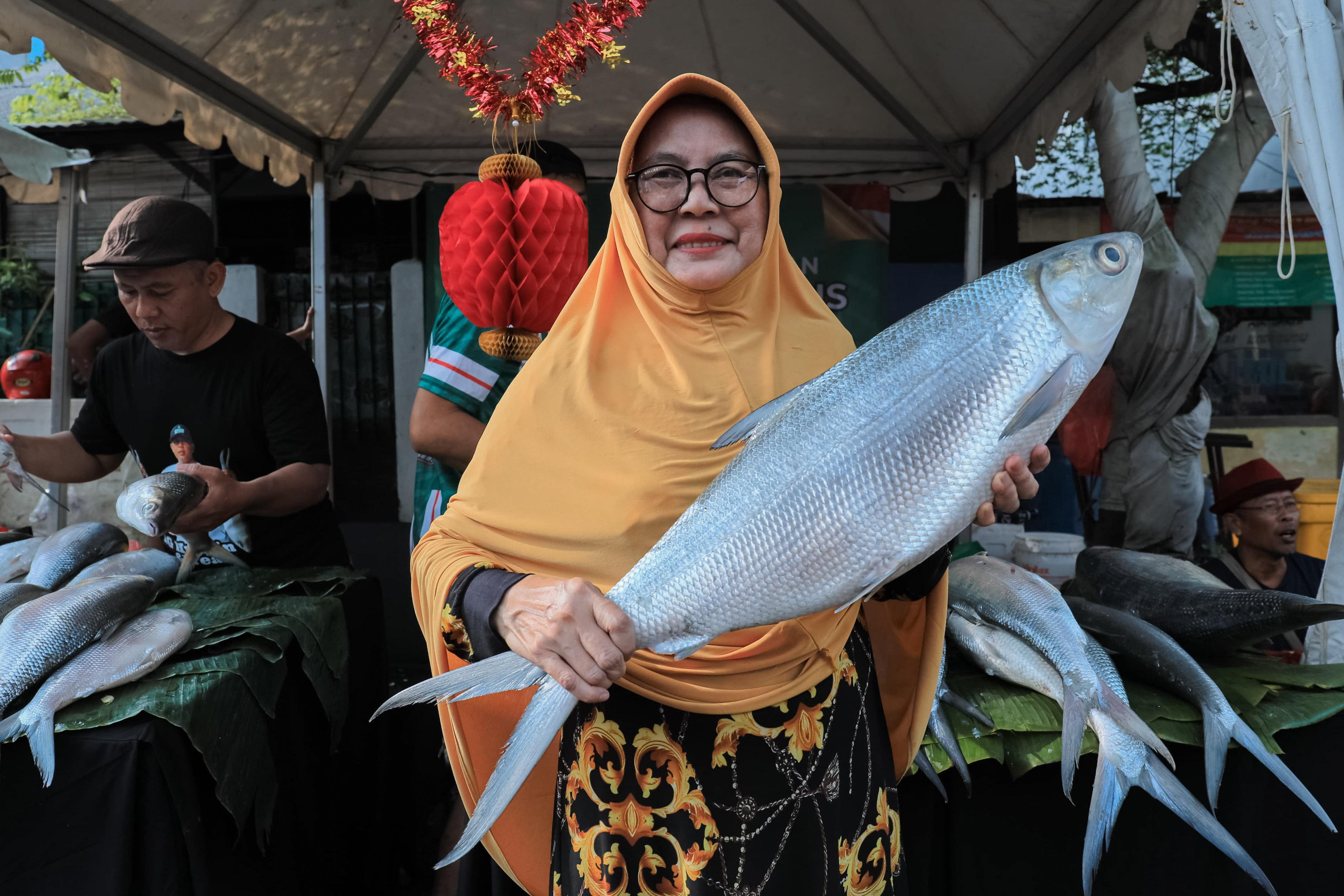 “Saya baru datang saja sudah membeli tiga ikan bandeng, dan nanti sebelum pulang akan membeli tiga ikan bandeng lagi. Total enam ikan bandeng, termasuk bandeng terbesar dengan berat 14,67 kilogram,” ungkapnya.
