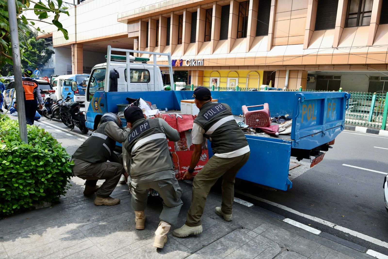 Mereka melakukan penertiban trotoar di kawasan Cikini, Senen Raya hingga depan Rumah Sakit Cipto Mangunkusumo.