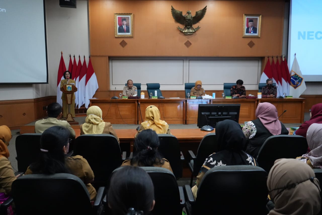 Sebanyak 150 peserta mengikuti Sosialisasi Hasil Surveilans Gizi dan Publikasi Data Stunting Sebagai Aksi 7 Konvergensi Stunting Jakarta Timur 2023, di Ruang Pola Lantai 2 Gedung Blok A, Kantor Walikota Jakarta Timur, Selasa (21/11/2023). Wakil Walikota Administrasi Jakarta Timur, Iin Mutmainnah, membuka kegiatan yang berlangsung secara luring dan daring.