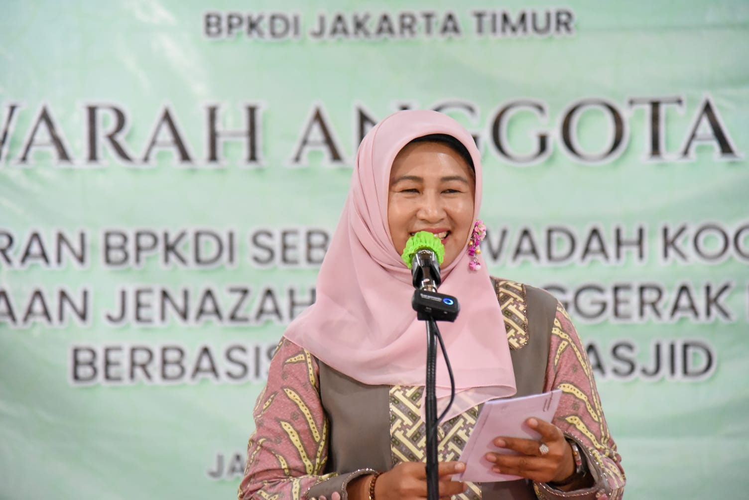 Wakil Walikota Administrasi Jakarta Timur, Iin Mutmainnah, membuka Musyawarah Anggota (MUSA) Ke IV BPKDI (Badan Pengelola Kegiatan Dakwah Islam), di Masjid Al_MUhajirin, Komplek Pulogebang Permai, Kelurahan Pulogebang, Kecamatan Cakung, Minggu (30/7/2023).